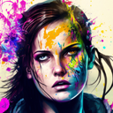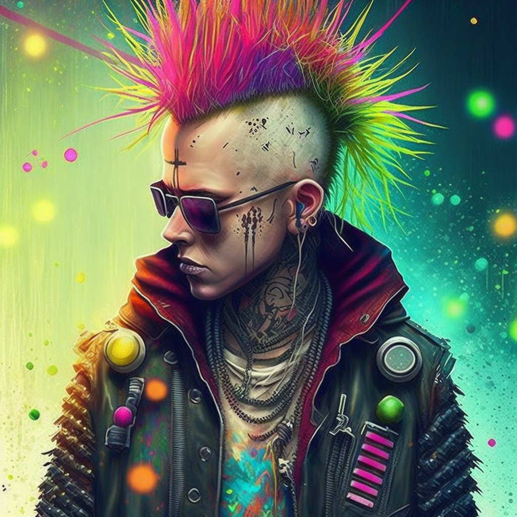 Portrait, lara croft, leather jacket, cool colorful cyberpunk, flowerpunk, in the style of Gediminas Pranckevicius, moebius, atompunk, Ink Dropped in water, splatter drippings, grunge t-shirt, tattoos, pulp Manga, cinematic lighting --testp --creative